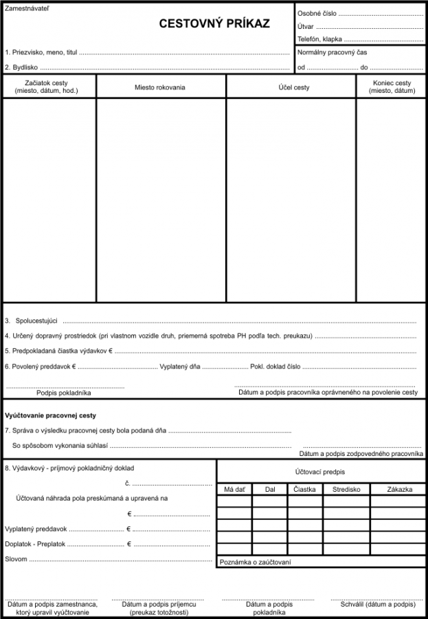 Cestovný príkaz A4 blok 50 listovýSkladom 50 ks3,20 EUR/ ks2,60 EUR bez DPH