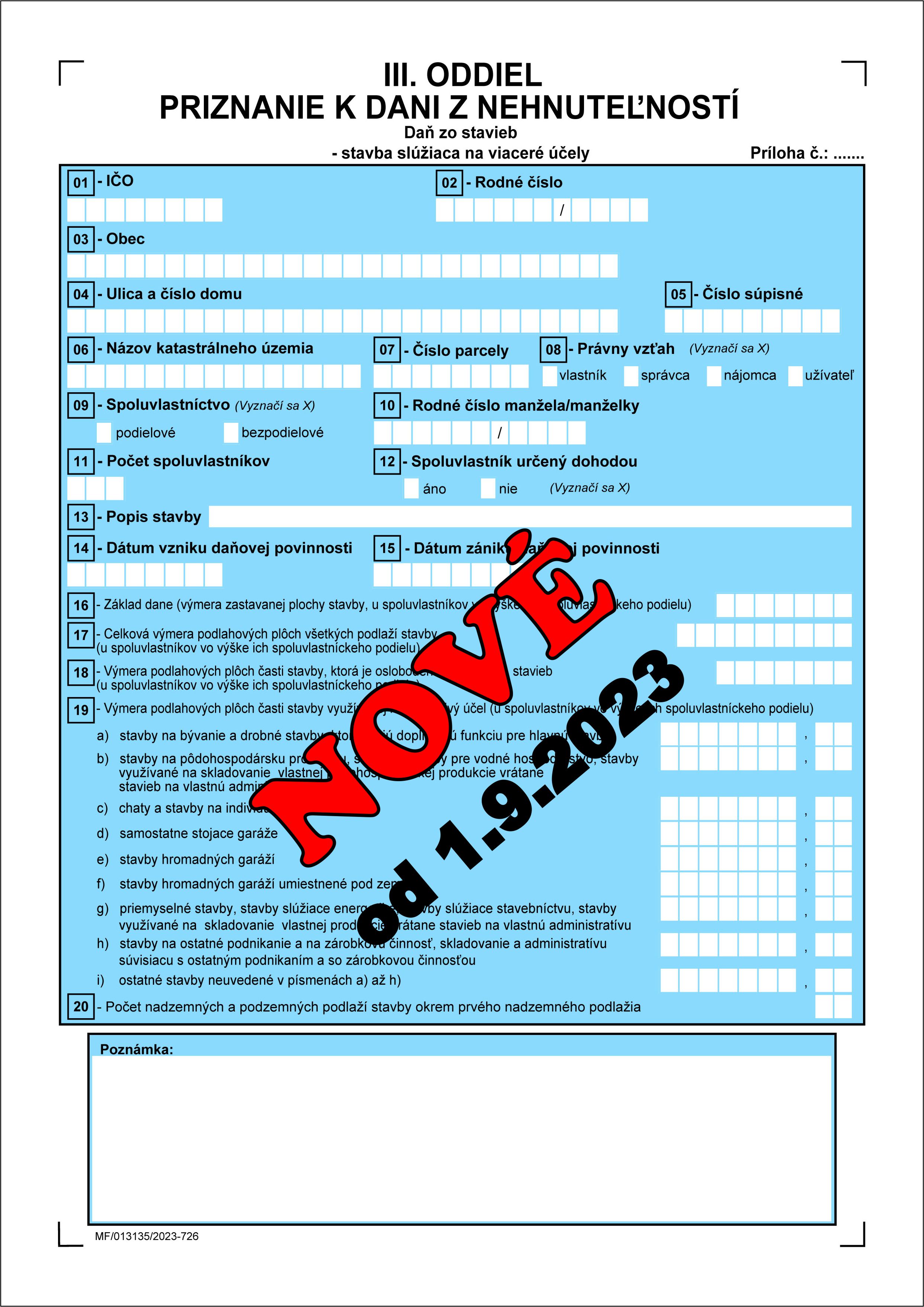 - Priznanie k dani zo stavieb - stavba sl. na viac. účely III. ODD.